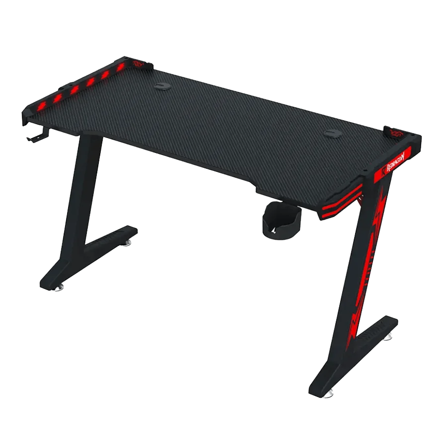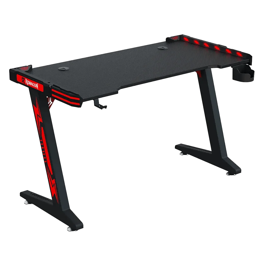 میز گیمینگ ردراگون Redragon GD-3112R 140cm LED با ابعاد 140×60 سانتیمتر طراحی شده است. این میز از فیبر کربن و فلز ساخته شده و بسیار مقاوم است. در کنار طراحی حرفهای، امکانات جانبی خوبی هم دارد. نگهدارنده لیوان، نگهدارنده هدست و موسپد همراه آن ارائه میشود. همچنین نورپردازی تک رنگ قرمز در لبهها، ظاهری جذاب و گیمینگ به میز میدهد. این میز انتخابی مناسب برای گیمرهایی است که ظاهر و عملکرد را همزمان میخواهند.