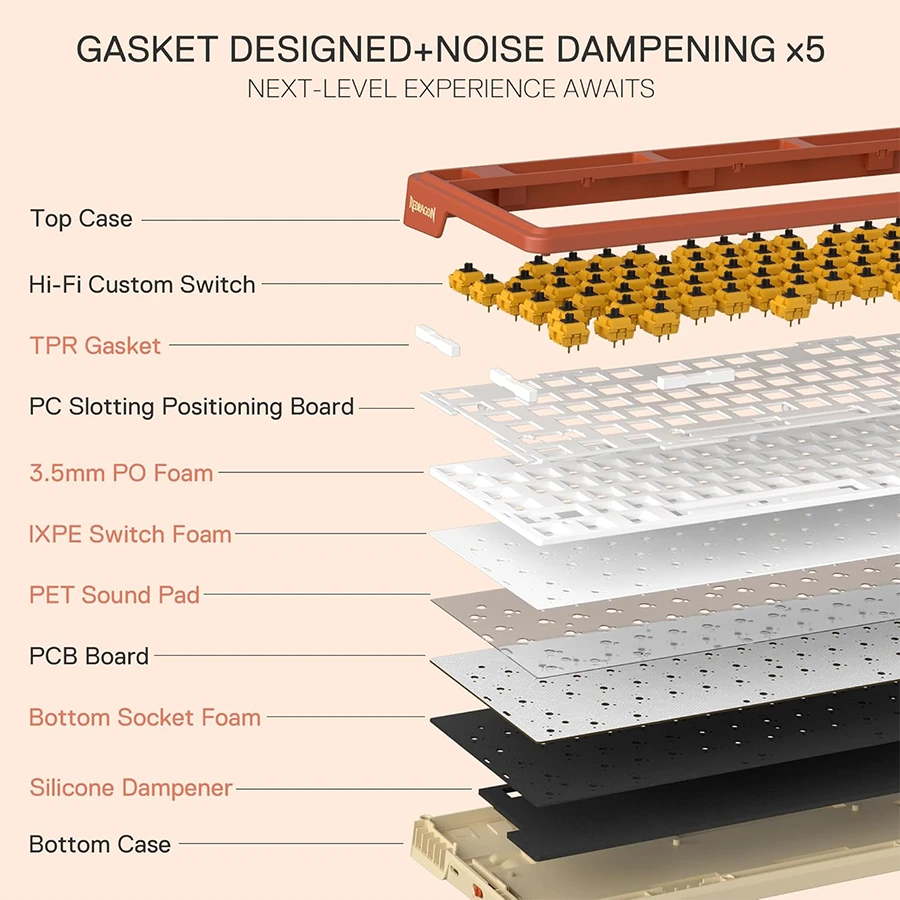 یکی از نقاط قوت اصلی Geb K673 AK، استفاده از ساختار Gasket پیشرفته برای کاهش نویز و افزایش نرمی تایپ است. به جای اتصال سنتی با پیچ، از بستهای دقیق و فومهای چندلایه برای حذف صدای اضافی استفاده شده است. این فناوری با جذب ارتعاشات و ایجاد بازخورد یکنواخت، حس تایپ بسیار نرم، روان و بیصدا را ایجاد میکند. کاربران حرفهای و گیمرها میتوانند ساعتها از تایپ یا بازی لذت ببرند بدون آنکه صدای ناخوشایند مزاحم شود.