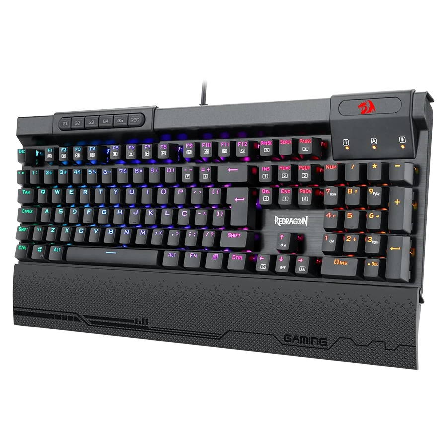 کیبورد مکانیکال گیمینگ ردراگون K563 RGB با طراحی ارگونومیک و بدنهای مقاوم از جنس ABS ساخته شده است. این کیبورد با دارا بودن 104 کلید مکانیکال، قابلیتAnti-Ghosting و نورپردازی RGB جذاب، ظاهری مدرن و حرفهای دارد. همچنین، طراحی شناور کلیدها باعث ایجاد حس لمس فوقالعاده و افزایش سرعت واکنش هنگام بازی میشود.