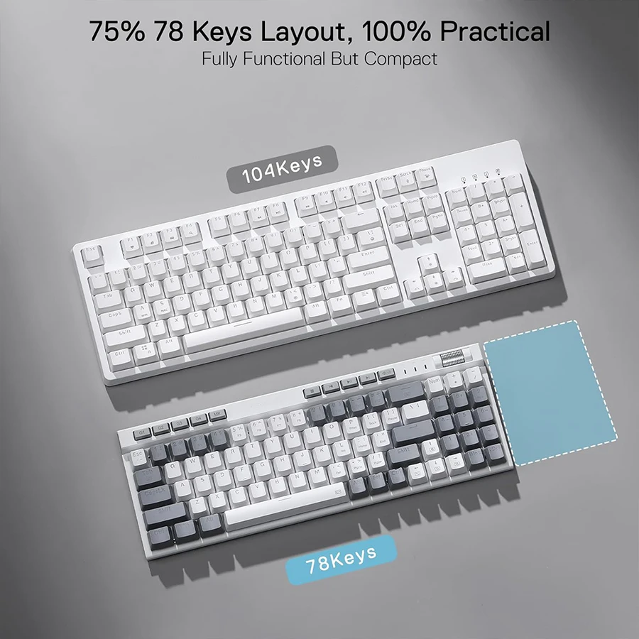 کیبورد مکانیکال گیمینگ ردراگون Redragon K655 WG RGB با طراحی ۷۵٪ و ۷۸ کلید، تعادلی عالی میان فشردگی و کاربرد ارائه میدهد. این چیدمان فضای میز کار را کاهش داده و در عین حال کلیدهای ضروری را حفظ میکند. حذف بخشهای اضافی و حفظ نامپد باعث شده این مدل برای گیمرها و کاربران حرفهای بسیار مناسب باشد. طراحی ارگونومیک و ارتفاع قابل تنظیم نیز راحتی استفاده طولانیمدت را تضمین میکند.