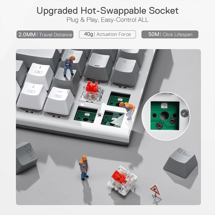 کیبورد K655 WG از سوئیچهای قرمز هاتسواپ پشتیبانی میکند که با بیش از ۹۹.۸٪ سوئیچهای بازار سازگارند. طراحی منحصربهفرد سوکت باعث میشود تعویض سوئیچها سریع و بدون نیاز به ابزار تخصصی انجام شود. عملکرد خطی و بیصدا، تایپ نرم و دقیق را ممکن کرده و گیمرها میتوانند بسته به سبک بازی خود آن را شخصیسازی کنند. این قابلیت، آزادی عمل بالایی برای ارتقاء و مدینگ فراهم میکند.