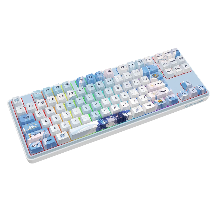 کیبورد بی سیم/باسیم مکانیکال گیمینگ ردراگون K707 AK PRO RGB با طراحی ۸۰ درصدی و فرم فاکتور TKL (بدون بخش نامپد) با ۸۷ کلید، فضای بیشتری برای حرکت موس در اختیار گیمرها قرار میدهد. این طراحی جمعوجور، مخصوصاً برای گیمرهای سبک FPS، فضای کاری راحتتر و آزادی عمل بیشتری فراهم میکند. در کنار اندازه مناسب، وزن ۱.۲ کیلوگرمی آن حس استحکام و کیفیت ساخت را القا میکند.