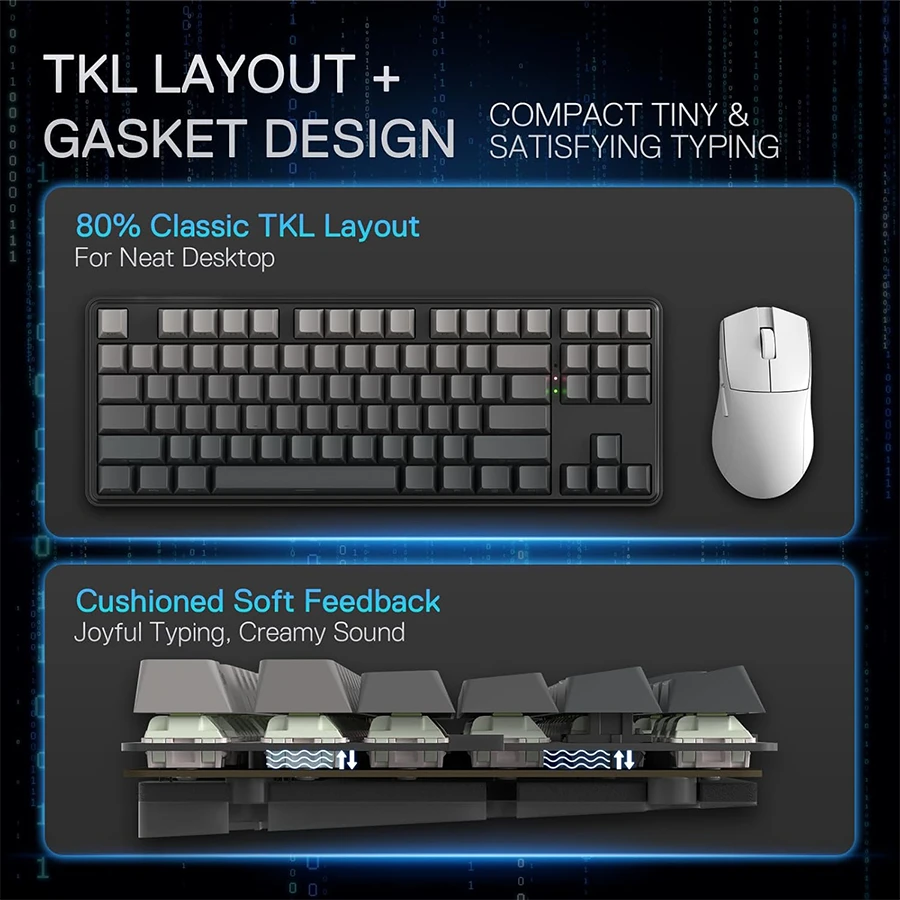یکی از ویژگیهای منحصربهفرد K707 SP PRO، ساختار Creamy Gasket است. که با حذف روش سنتی پیچکاری، از پوششهای قفلشونده دقیق و گسکتهای سیلیکونی برای کاهش نویز و افزایش انعطافپذیری استفاده میکند. این طراحی باعث میشود هر فشار روی کلید، بازخوردی یکنواخت و نرم داشته باشد و صدای تایپ کردن کاهش یابد. نتیجه، تجربه تایپ بسیار روان، تمیز و بیصدایی است که بهویژه در محیطهای کاری یا گیمینگ شبانه ایدهآل است.