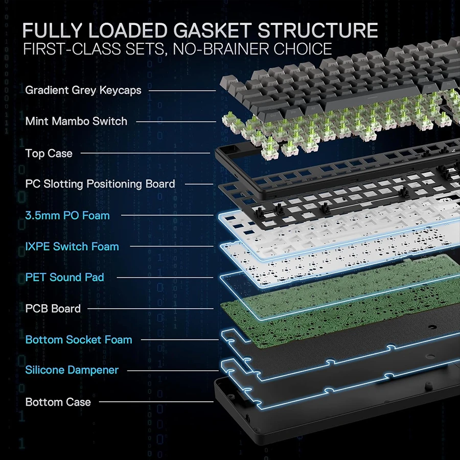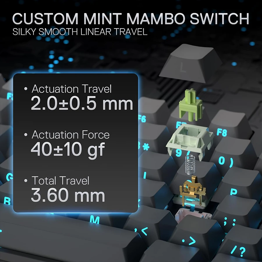 این کیبورد به سوییچهای خطی Mint Mambo مجهز شده که به صورت ویژه روغنکاری و بهینهسازی شدهاند. این سوییچها در کنار ساختار گسکت، حس تایپ کرمی، نرم و بیصدا را برای کاربر به ارمغان میآورند. همچنین با پشتیبانی از سوکتهای هاتسواپ سازگار با سوییچهای ۳ و ۵ پین، کاربران میتوانند به راحتی سوییچهای دلخواه خود را جایگزین کنند و تجربهای شخصیسازی شده داشته باشند.