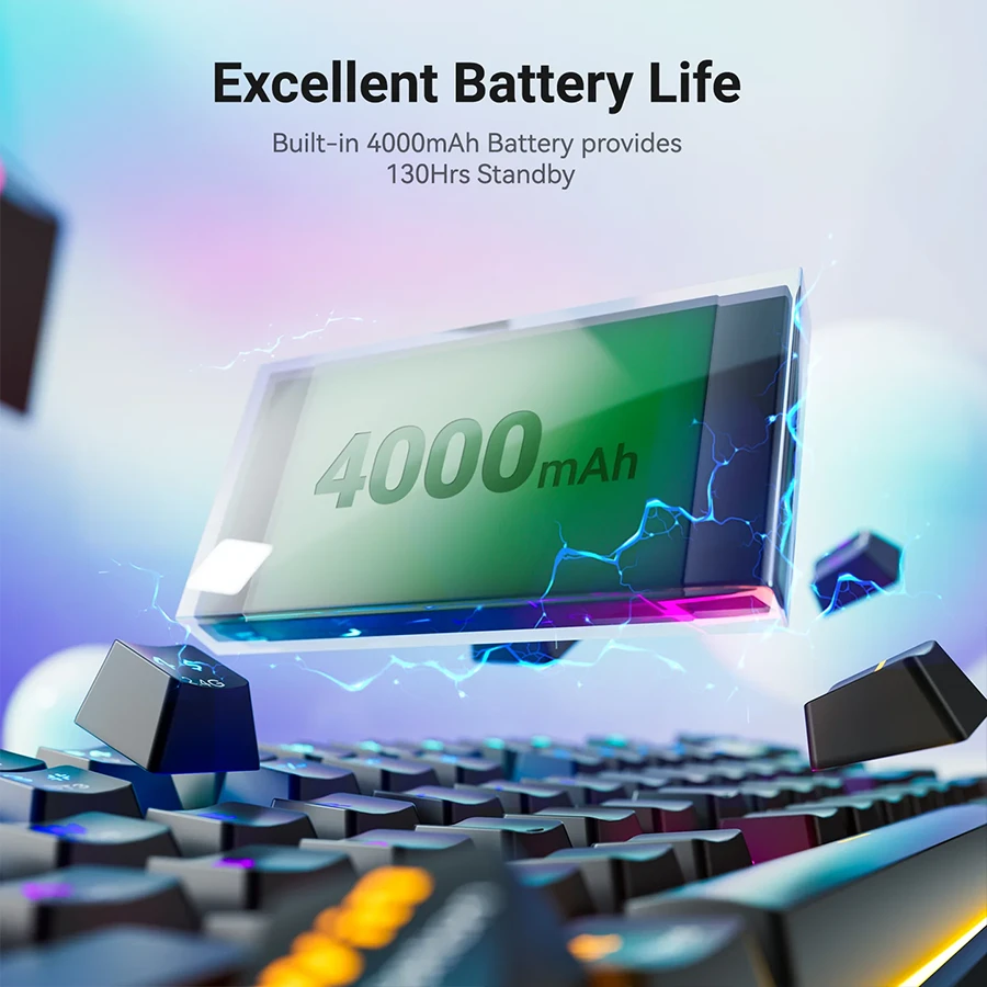 Redragon K708 PRO RGB از سه روش اتصال بهره میبرد: USB تایپ C باسیم، اتصال بیسیم ۲.۴ گیگاهرتز و بلوتوث. این کیبورد میتواند همزمان با ۵ دستگاه مختلف جفت شود و بهراحتی میان آنها سوئیچ کند. که آن را به گزینهای بینظیر برای کاربرانی که بین رایانه، لپتاپ، گوشی یا حتی کنسولهایی چون PS5 و Xbox جابجا میشوند، تبدیل کرده است. این انعطاف در اتصال باعث میشود که کیبورد همیشه آمادهی استفاده باشد، بدون توجه به دستگاه یا پلتفرم.