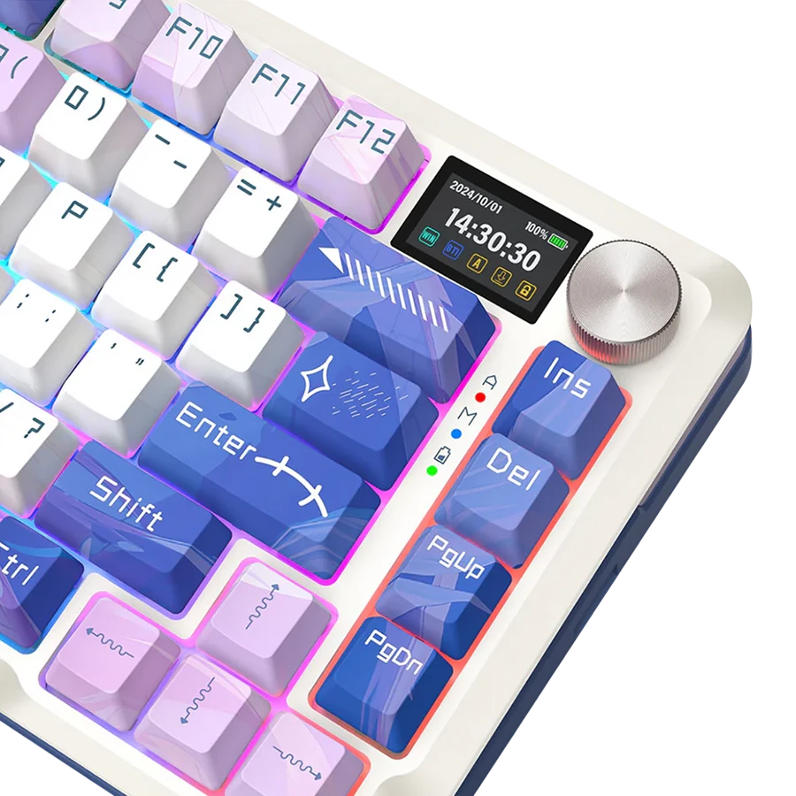 کیبورد بی سیم/باسیم مکانیکال گیمینگ ردراگون K708AK RGB PRO با طراحی کامپکت ۸۱ کلیدی و نمایشگر ۱.۱۴ اینچی TFT رنگی، تجربهای مدرن و کارآمد را ارائه میدهد. این نمایشگر همراه با یک کلید چرخان چندمنظوره طراحی شده که امکان تنظیم صدا، نورپردازی و سایر تنظیمات را با راحتی بیشتر فراهم میکند. طراحی این کیبورد، ضمن حفظ امکانات حرفهای، کمترین فضا را روی میز اشغال میکند. و مناسب برای گیمرها و کاربران حرفهای است.
