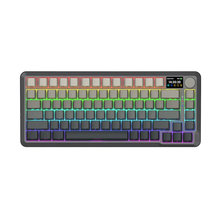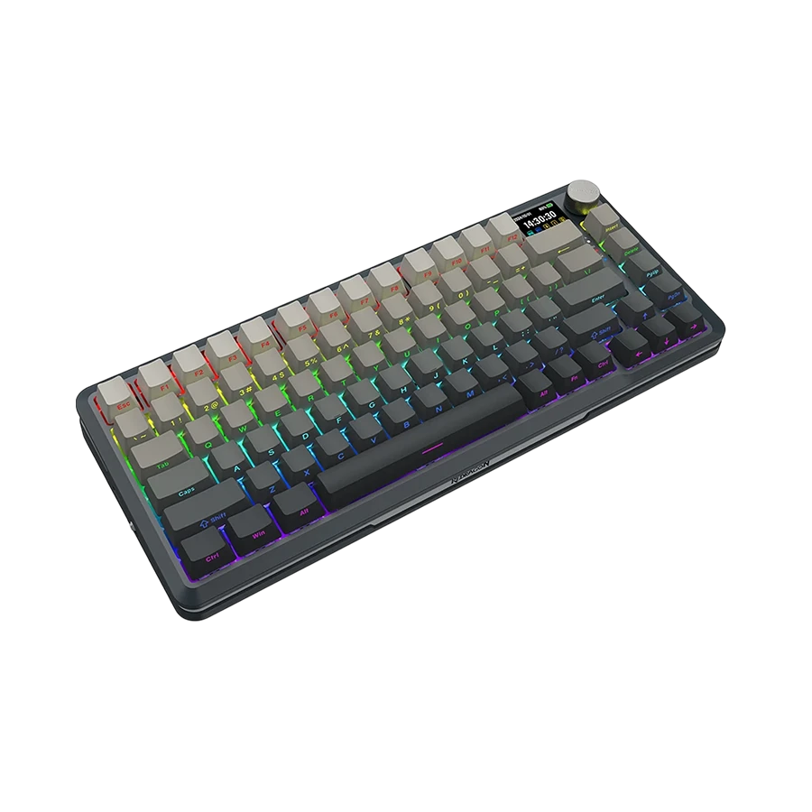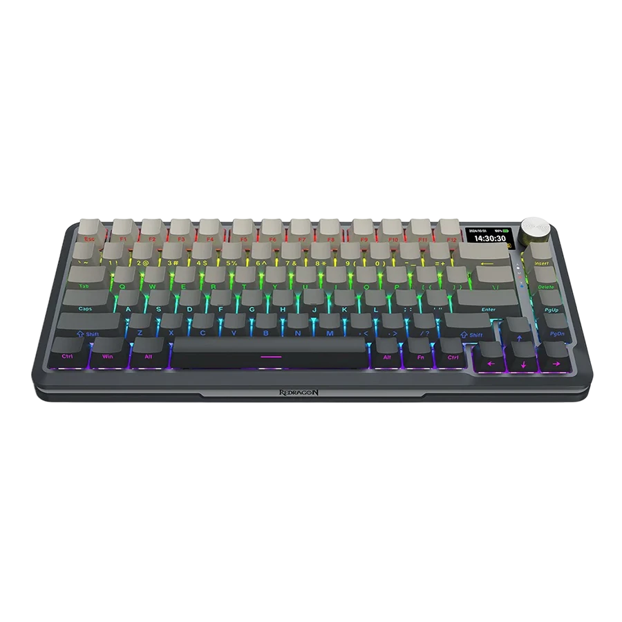 کیبورد بی سیم مکانیکال گیمینگ ردراگون Redragon K708GG RGB PRO با طراحی کامپکت ۸۱ کلیدی و نمایشگر ۱.۱۴ اینچی TFT رنگی، تجربه‌ای مدرن و کارآمد را ارائه می‌دهد. این نمایشگر همراه با یک کلید چرخان چندمنظوره طراحی شده که امکان تنظیم صدا، نورپردازی و سایر تنظیمات را با راحتی بیشتر فراهم می‌کند. طراحی این کیبورد، ضمن حفظ امکانات حرفه‌ای، کمترین فضا را روی میز اشغال می‌کند. و مناسب برای گیمرها و کاربران حرفه‌ای است.