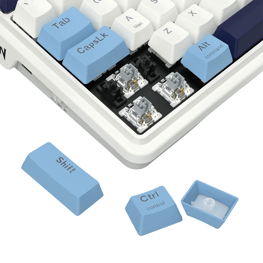 یکی از برجستهترین ویژگیهای کیبورد K728 WBB PRO استفاده از ساختار گسکت (Gasket Structure) است. در این مدل، بر خلاف روشهای سنتی پیچکاری، از پوششهای قفلشوندهی دقیق همراه با واشرهای نرم استفاده شده که علاوه بر بهبود انعطافپذیری، صداهای اضافی ناشی از تایپ را به طور چشمگیری کاهش میدهد. همچنین، وجود سوکتهای قابل تعویض (Hot-Swap) این امکان را به کاربر میدهد تا بدون نیاز به لحیمکاری، سوئیچهای مکانیکی کیبورد را به راحتی تعویض کند و تجربه تایپ یا گیمینگ خود را شخصیسازی نماید.