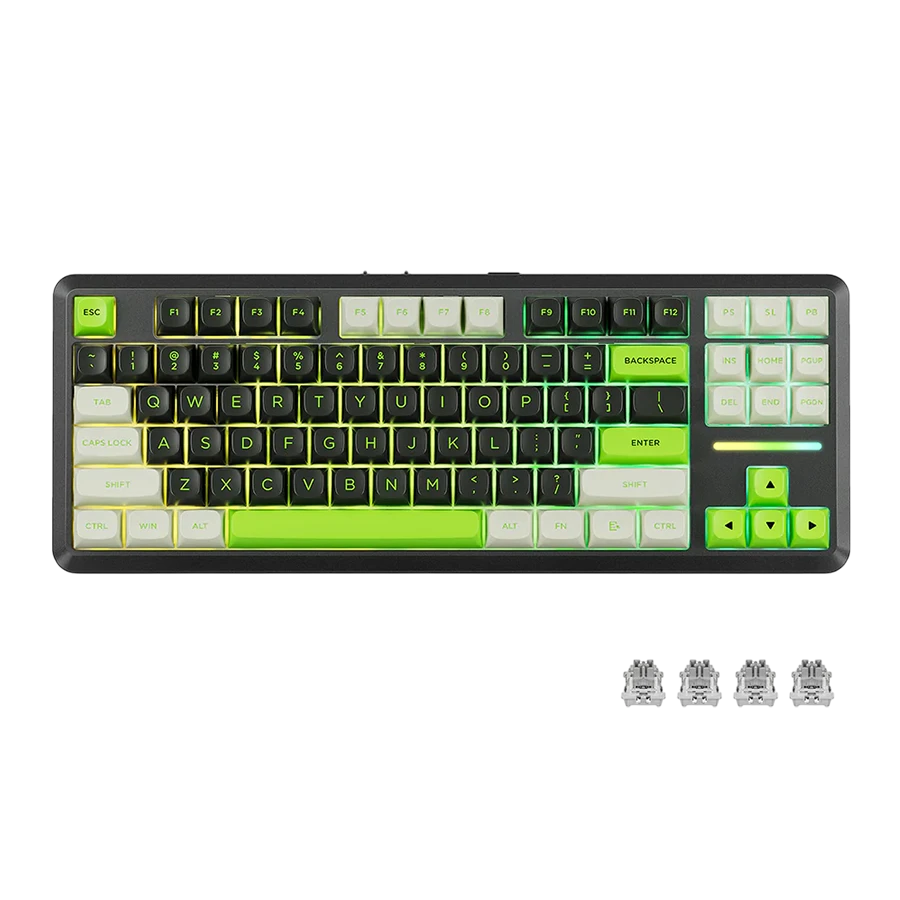 نورپردازی RGB با 16.8 میلیون رنگ جلوهای حرفهای ایجاد میکند. LEDهای South-Facing روشنایی یکنواختی ارائه میدهند. تنظیمات نورپردازی بهصورت نرمافزاری قابل شخصیسازی است. کلیدها از جنس PBT مقاوم ساخته شدهاند. نوشتههای روی کلیدها در طول زمان کمرنگ نمیشوند. ترکیب رنگ مشکی، سبز و سفید ظاهر متفاوتی ایجاد کرده است.