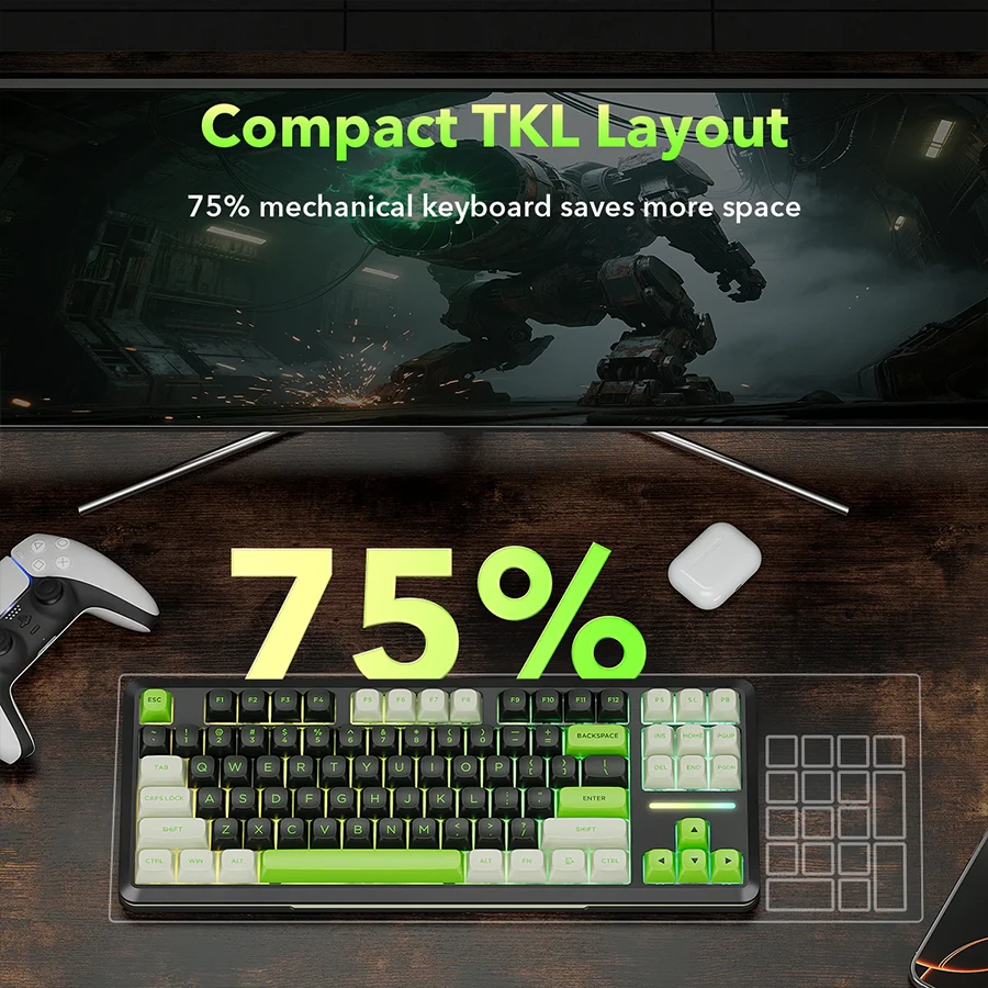 چیدمان 87 کلیدی TKL در این کیبورد فضای بیشتری برای حرکت ماوس فراهم میکند. این طراحی باعث افزایش آزادی عمل در بازیهای رقابتی میشود. کلیدهای جهتنما و کلیدهای کنترلی بهصورت کامل حفظ شدهاند. حذف بخش نامپد به کاهش ابعاد کلی کیبورد کمک کرده است. این ساختار برای میزهای کوچک بسیار مناسب است. عملکرد کلیدها در بازی کاملاً دقیق و بدون تداخل است. تمامی کلیدها از قابلیت Anti-Ghosting پشتیبانی میکنند.