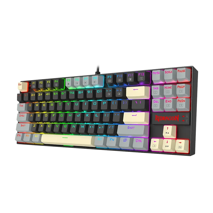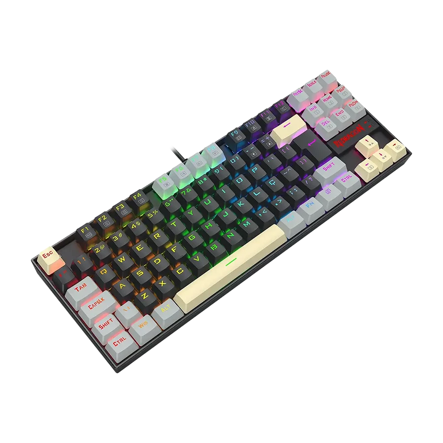 کیبورد مکانیکال گیمینگ ردراگون Redragon KUMARA K552 LGY RGB با طراحی مدرن و بدنه فلزی مقاوم عرضه میشود. نورپردازی RGB پویا با شش حالت متنوع، جلوهای جذاب و حرفهای به میز گیمینگ کاربران اضافه میکند. امکان تنظیم شدت نور و افکتها باعث میشود کاربر فضای کاری یا گیمینگ دلخواه خود را بسازد.