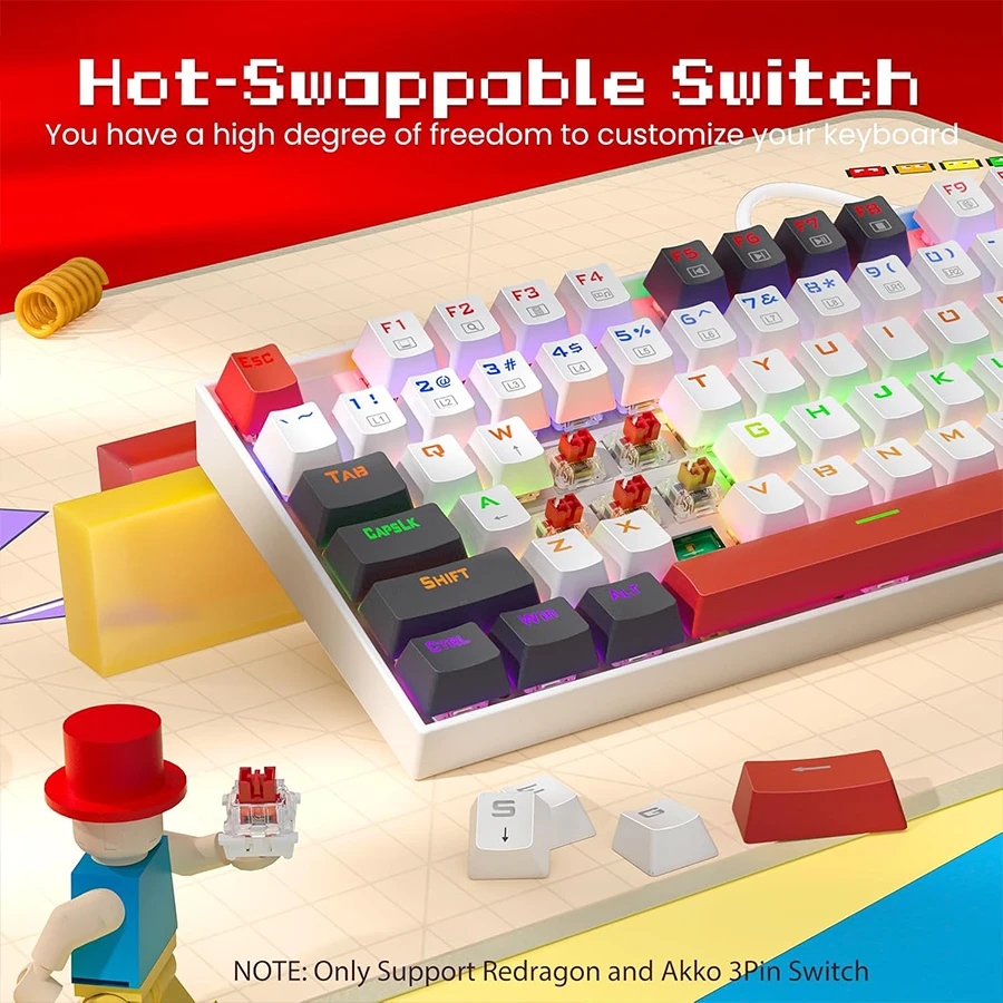 کیبورد ردراگون KUMARA K552 WLR RGB از سوئیچهای Hot-Swap سه پین پشتیبانی میکند. کاربران میتوانند سوئیچها را بدون لحیمکاری تعویض کرده و حس تایپ دلخواه خود را ایجاد کنند این ساختار ماژولار، کیبورد را به گزینهای جذاب برای علاقهمندان شخصیسازی تبدیل میکند. امکان تغییر صدا، حس فشردن و ظاهر کیبورد، آزادی عمل بالایی در اختیار کاربران قرار میدهد.