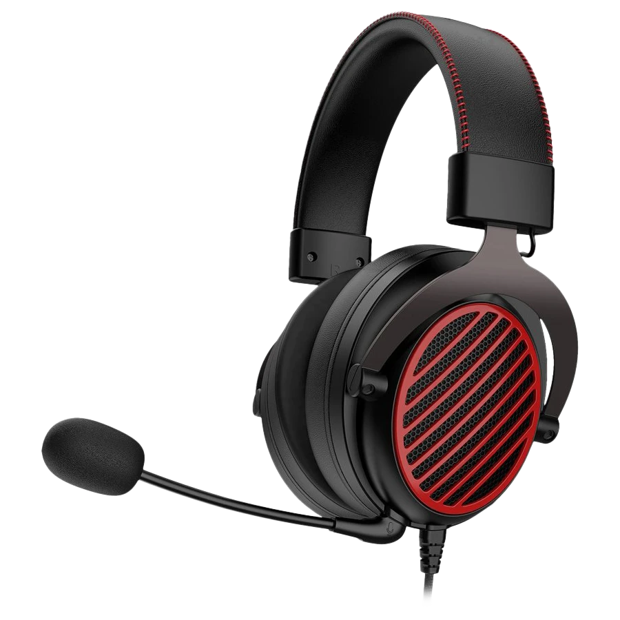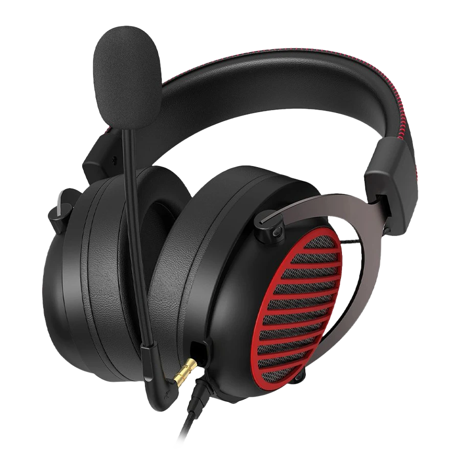 هدست گیمینگ ردراگون Luna H540 با طراحی دور گوشی و وزن تنها ۲۷۵ گرم، راحتی فوقالعادهای در استفاده طولانیمدت فراهم میکند. رنگ مشکی با طرح قرمز آن جلوهای جذاب و حرفهای به هدست بخشیده است. طراحی پشت باز (open-back) باعث ایجاد صدایی فضایی و طبیعیتر میشود که برای گیمرهایی که به دقت صدا اهمیت میدهند، مناسب است.