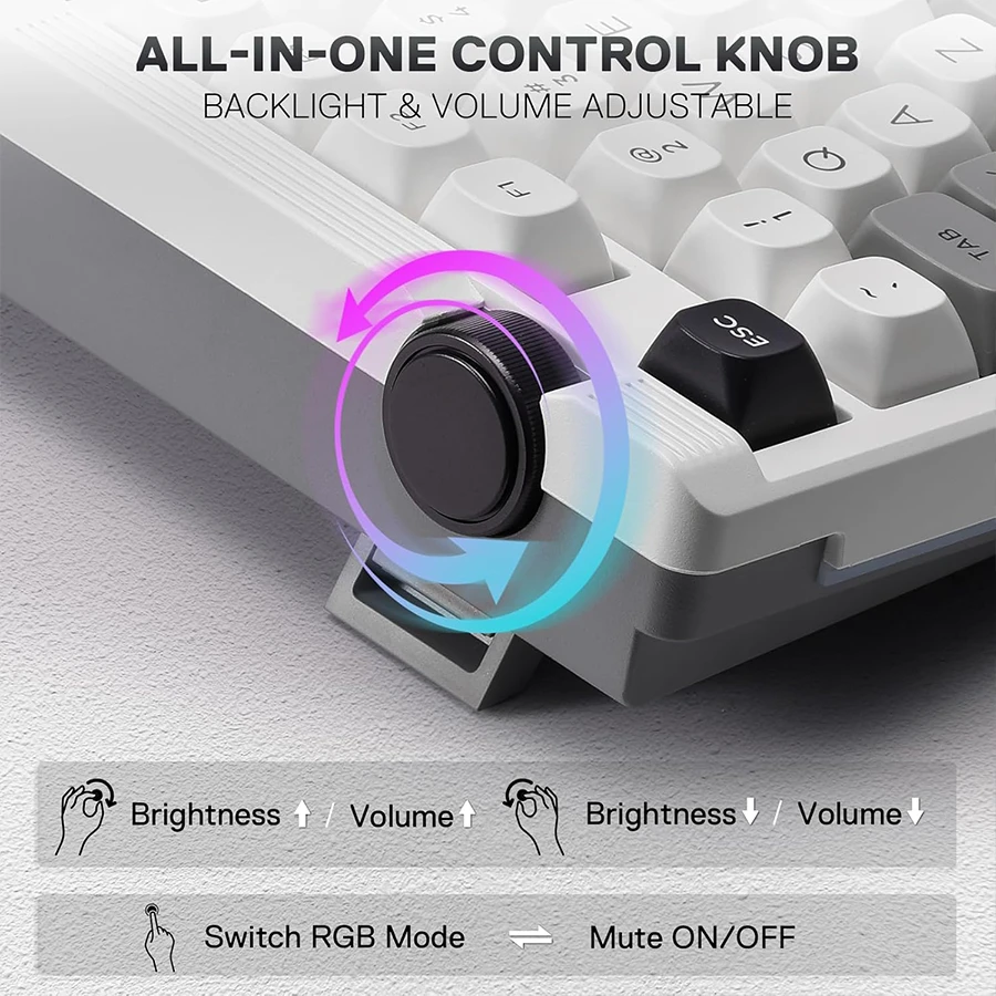 دکمه چندمنظوره تعبیهشده روی کیبورد K729 امکان کنترل صدا و نور پسزمینه را بدون اشغال فضای اضافی فراهم میکند. کاربران میتوانند با یک چرخش ساده، میزان روشنایی یا ولوم را تنظیم نمایند. همچنین پشتیبانی از نرمافزار اختصاصی Redragon به کاربر اجازه میدهد ماکروها، افکتها و میانبرهای شخصی ایجاد کند. این ویژگی برای گیمرها و کاربران حرفهای بسیار کاربردی است.