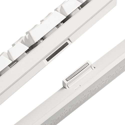 این کیبورد به صورت ارگونومیک طراحی شده که تکیه گاه مچ دستش آن را به یک کیبورد بسیار راحت تبدیل کرده است. این تکیه گاه بوسلیه آهن ربا به کیبورد متصل می شود.