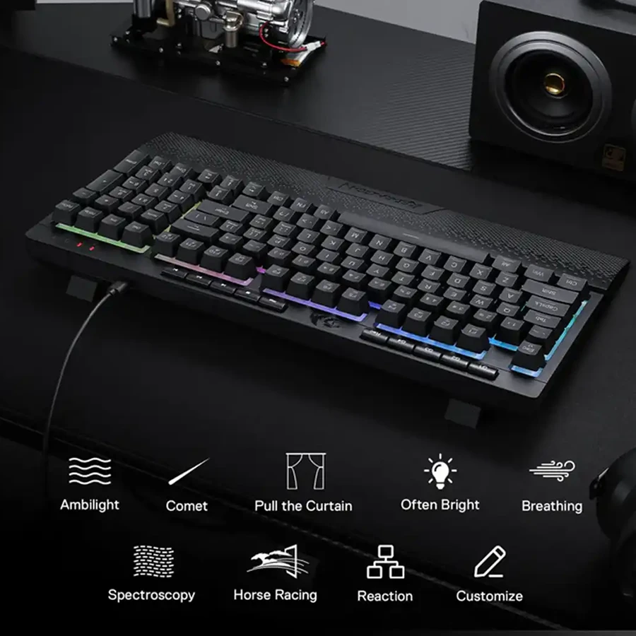 نورپردازی RGB در کیبورد SHIVA K515 ، امکان شخصیسازی رنگها و افکتهای نوری مختلف را برای کاربران فراهم میکند. از طریق نرمافزار اختصاصی، کاربران میتوانند جلوههای نوری را تغییر داده و فضای گیمینگ خود را حرفهایتر کنند.