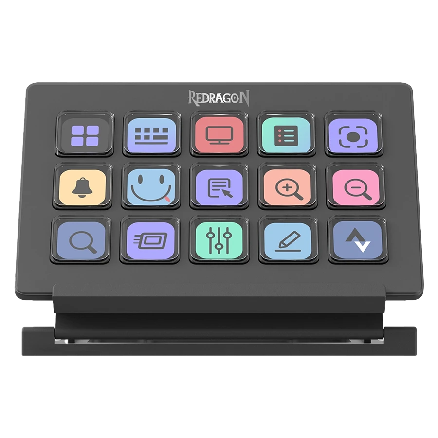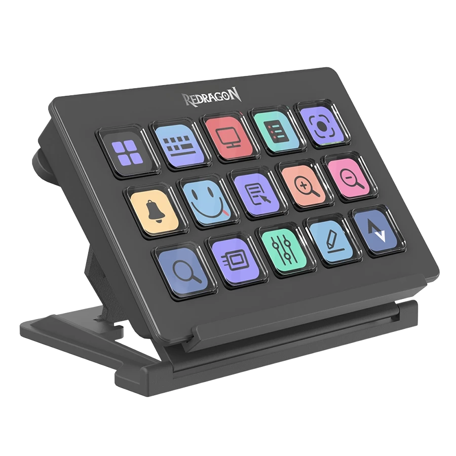 استریم دک Redragon SS-550 دارای 15 دکمهی LCD است که هر کدام قابل برنامهریزی و شخصیسازی هستند. این دکمهها به کاربران این امکان را میدهند که به سرعت به عملکردهای مختلف دسترسی پیدا کنند.