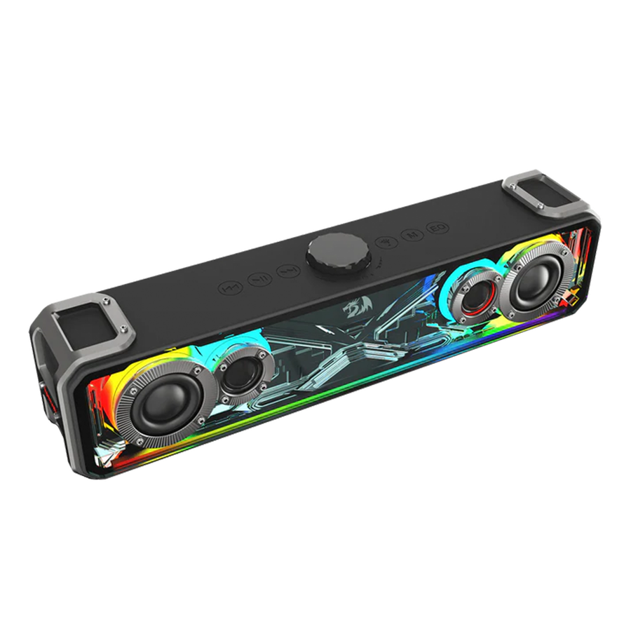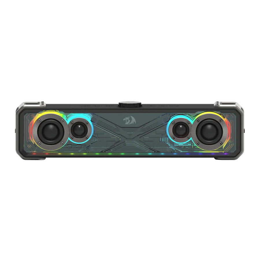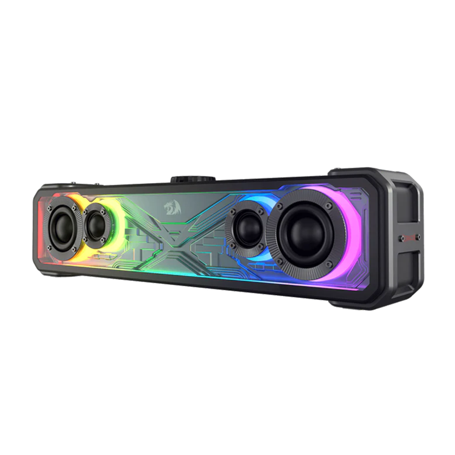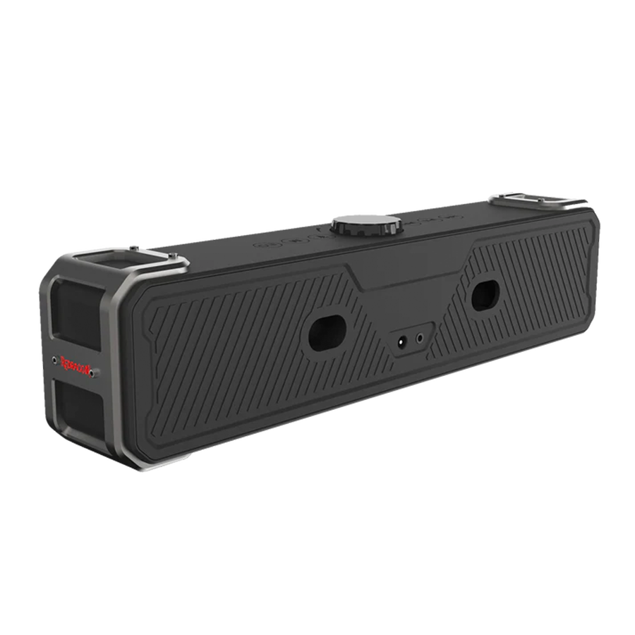 Redragon SURGE GS817 یک اسپیکر گیمینگ رومیزی با توان خروجی واقعی ۳۰ وات (۲ × ۱۵ وات) است که به صورت ساندبار طراحی شده و صدای استریوی واضح با بیس تقویتشده تولید میکند. این دستگاه مجهز به دو نوع ورودی صوتی شامل بلوتوث نسخه ۵.۳ با برد مؤثر تا ۱۰ متر و جک AUX 3.5 میلیمتری است.