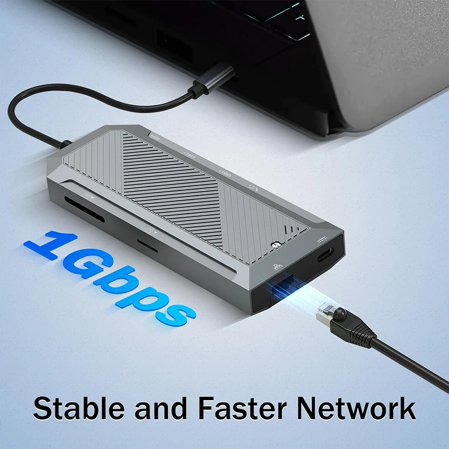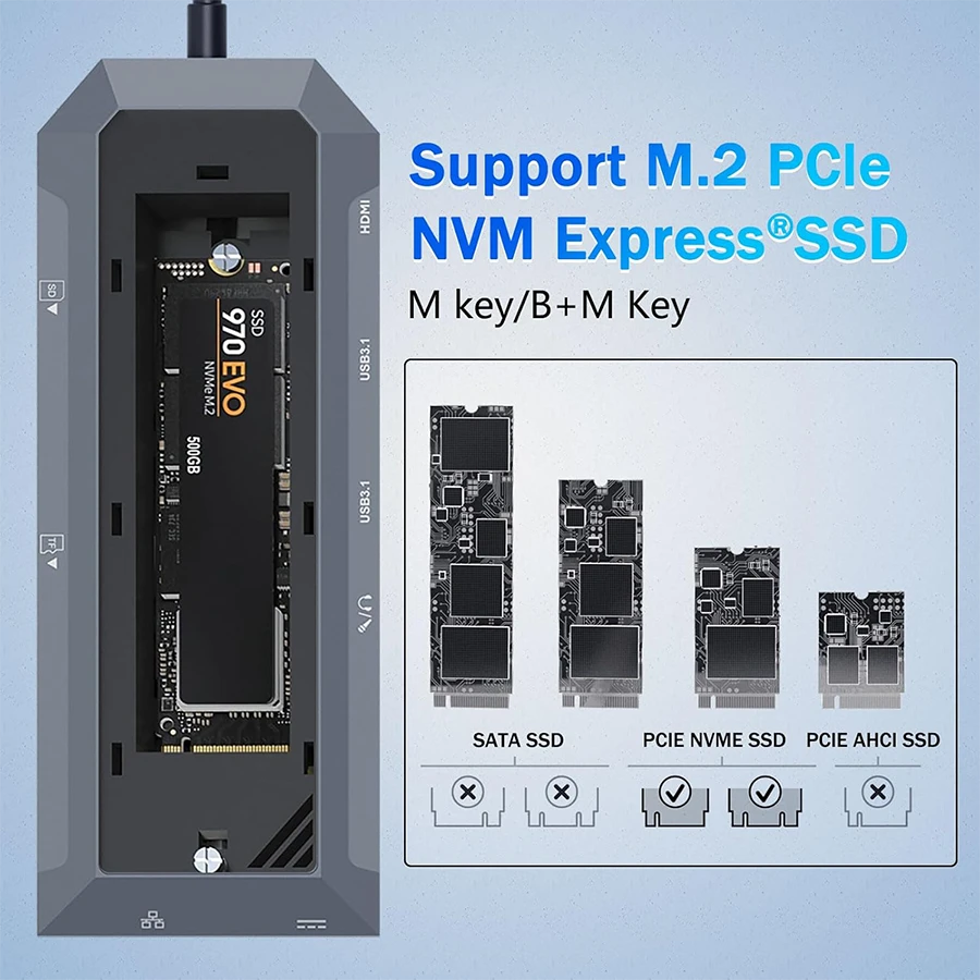 با پشتیبانی از USB-C و USB-A 3.1 با سرعت 10Gbps، انتقال فایلهای بزرگ در کسری از ثانیه انجام میشود. هاب Redragon UCA-9 دارای اسلات اختصاصی برای نصب حافظه SSD NVMe با اندازههای مختلف است. این ویژگی، بدون پشتیبانی از SSDهای SATA/AHCI، برای کاربرانی که نیاز به ذخیرهسازی سریع دارند ایدهآل است.