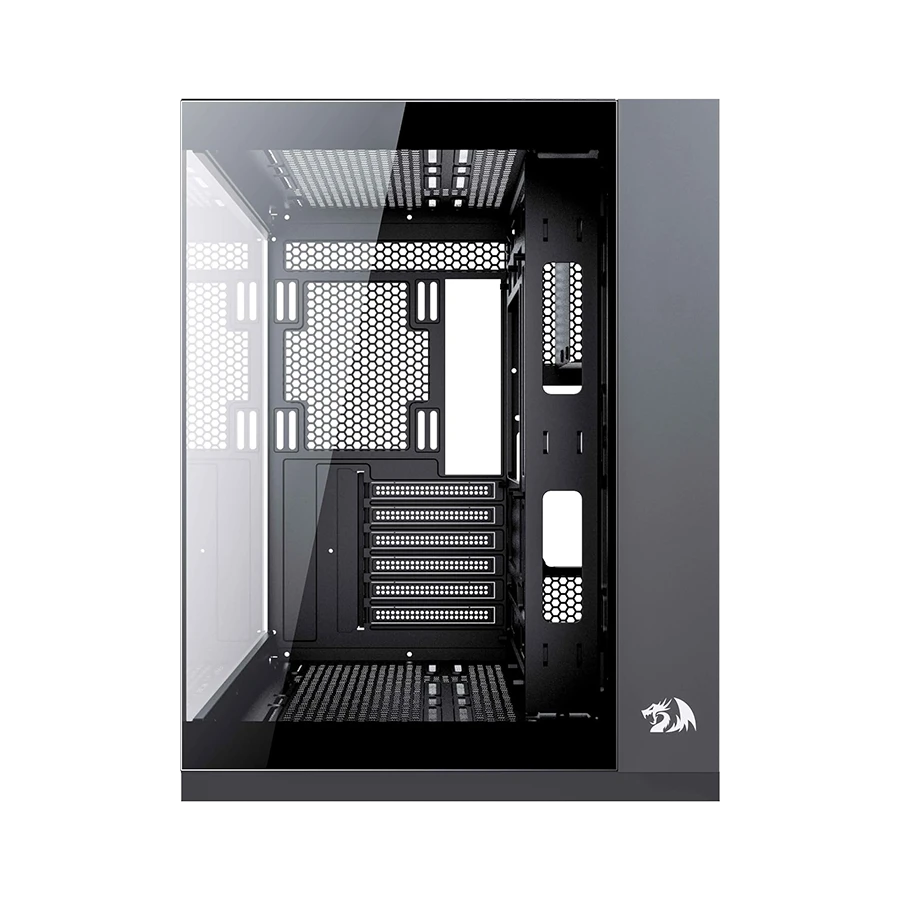 کیس گیمینگ ردراگون Redragon Wideload Pro CA-604 با طراحی آکواریومی مینیمال، جلوه‌ای مدرن و چشم‌نواز به سیستم شما می‌بخشد. بدنه از جنس استیل SPCC و شیشه حرارت‌ دیده مقاوم ساخته شده تا علاوه بر استحکام، زیبایی داخلی سیستم نیز به‌ خوبی دیده شود. رنگ مشکی مات و خطوط نرم بدنه، آن را به انتخابی ایده‌آل برای گیمرها و طراحان حرفه‌ای تبدیل کرده است. درب شیشه‌ای کناری با کیفیت بالا، دید کاملی از اجزای داخلی فراهم می‌کند و حس لوکس بودن را افزایش می‌دهد.