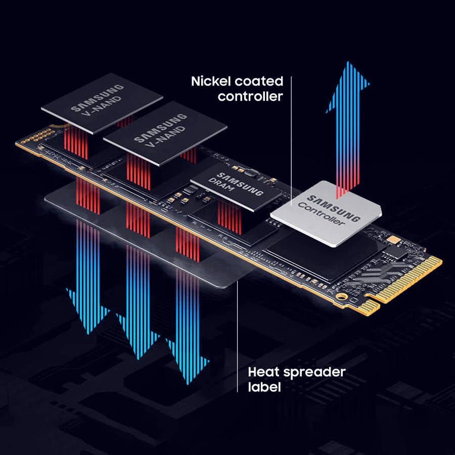 این SSD پیشرفته با کنترلر ۵ نانومتری، بهره‌وری انرژی را تا ۴۹ درصد نسبت به نسل قبل افزایش داده است. چنین بهینه‌سازی‌ای باعث می‌شود هنگام استفاده طولانی، مصرف برق و گرمای تولیدی کاهش چشمگیری داشته باشد. سامسونگ از سیستم کنترل حرارتی پیشرفته استفاده کرده تا عملکرد دستگاه حتی در فشار کاری بالا ثابت بماند. این فناوری خنک‌کننده هوشمند، طول عمر قطعات را افزایش داده و مانع افت سرعت در اثر افزایش دما می‌شود. نتیجه آن، اجرای روان وظایف سنگین بدون نیاز به توقف یا کاهش سرعت است.