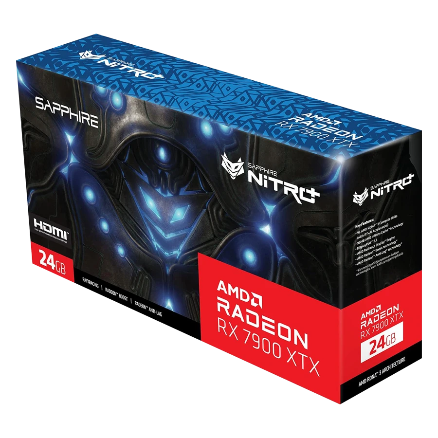 کارت گرافیک سافایر NITRO+ AMD Radeon RX 7900 XTX Vapor-X 24GB از جمله جدیدترین و پیشرفتهترین محصولات AMD است. که با بهرهگیری از فناوریهای نوین و طراحی پیشرفته، عملکردی بینظیر برای گیمرها و حرفهایها ارائه میدهد. این کارت گرافیک مجهز به پردازنده AMD Radeon RX 7900 XTX با معماری RDNA™ 3 و فناوری ساخت ۵ نانومتری است. این ویژگیها به بهبود کارایی و کاهش مصرف انرژی کمک میکنند. RDNA™ 3 با بهرهگیری از ۹۶ واحد پردازشی (CU) همراه با شتابدهندههای RT و AI، قدرت پردازشی فوقالعادهای برای اجرای بازیهای سنگین و نرمافزارهای حرفهای فراهم میکند.
