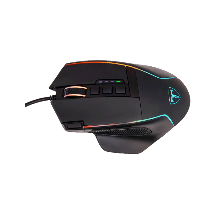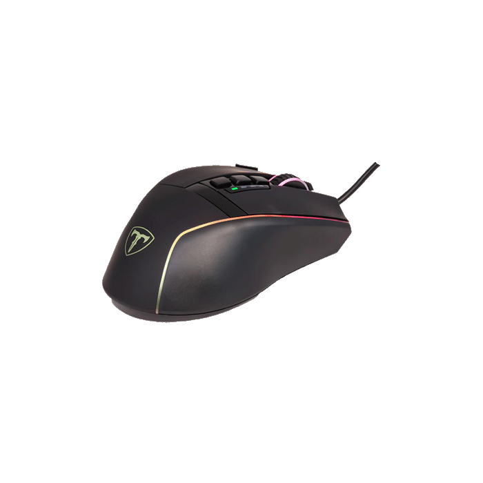 9 عدد از این کلیدها قابلیت برنامه ریزی از طریق نرم افزار مخصوص را دارند و کلیدهای بالا شامل اسکرول و تغییر میزان دقیت حسگر در حالت پیش فرض می باشند. همچنین از کلیدهای کناری می توان برای Forward/Backward و از دکمه سمت چپ جهت انجام شلیک در بازی ها استفاده نمود. موس گیمینگ T-DAGGER T-TGM309 از نورپردازی RGB در بدنه برخوردار اسن و حسگر اپتیکال آن دارای حداکثر دقت 16000dpi و عملکرد کاملا سریع در اجرای دستورات می باشد.