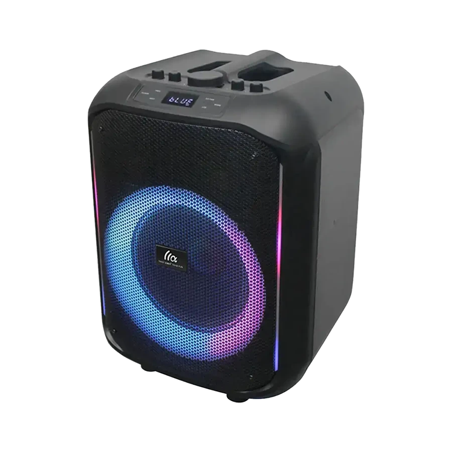 اسپیکر تازاتا FS-L1210 تنها یک دستگاه صوتی نیست، بلکه با نورپردازی RGB خود جلوه‌ای از انرژی و هیجان به فضا می‌بخشد. چراغ‌های رنگارنگ این اسپیکر با ریتم موسیقی هماهنگ می‌شوند و محیطی پویا و پرشور ایجاد می‌کنند. شما می‌توانید از طریق کلید مخصوص نور، حالت‌های مختلف را انتخاب کرده و فضای جشن خود را شخصی‌سازی کنید.