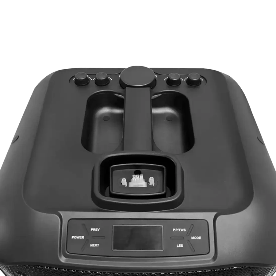جنس بدنه پلاستیکی اسپیکر تازاتا FS-T868 ضمن کاهش وزن، مقاومت بالایی در برابر ضربه و خط و خش دارد. رنگ مشکی مات آن با هر محیطی هماهنگ میشود و حس حرفهای بودن را القا میکند. وجود صفحه نمایش LED باعث میشود کاربر بتواند وضعیت پخش، باتری و ورودیها را بهراحتی کنترل کند. دسته حمل آسان نیز امکان جابهجایی اسپیکر را در سفر یا مهمانیها فراهم میسازد. این طراحی هوشمندانه و دقیق، FS-T868 را به محصولی با دوام و کاربردی برای تمام موقعیتها تبدیل کرده است.