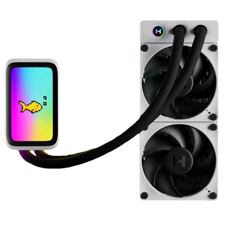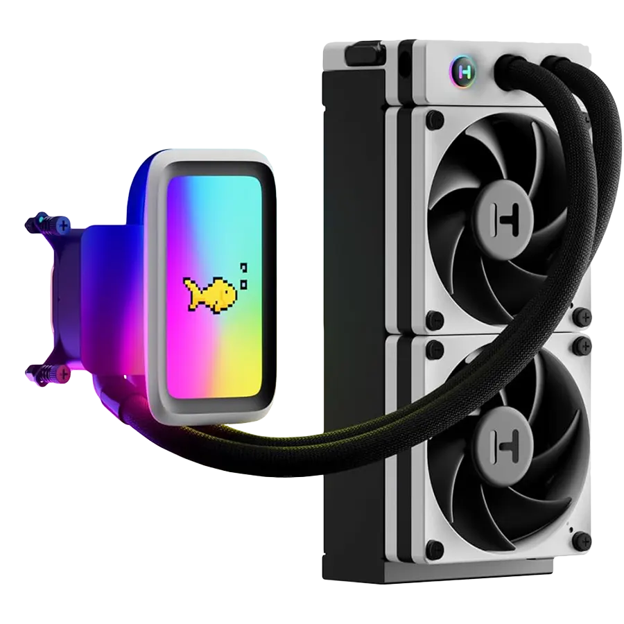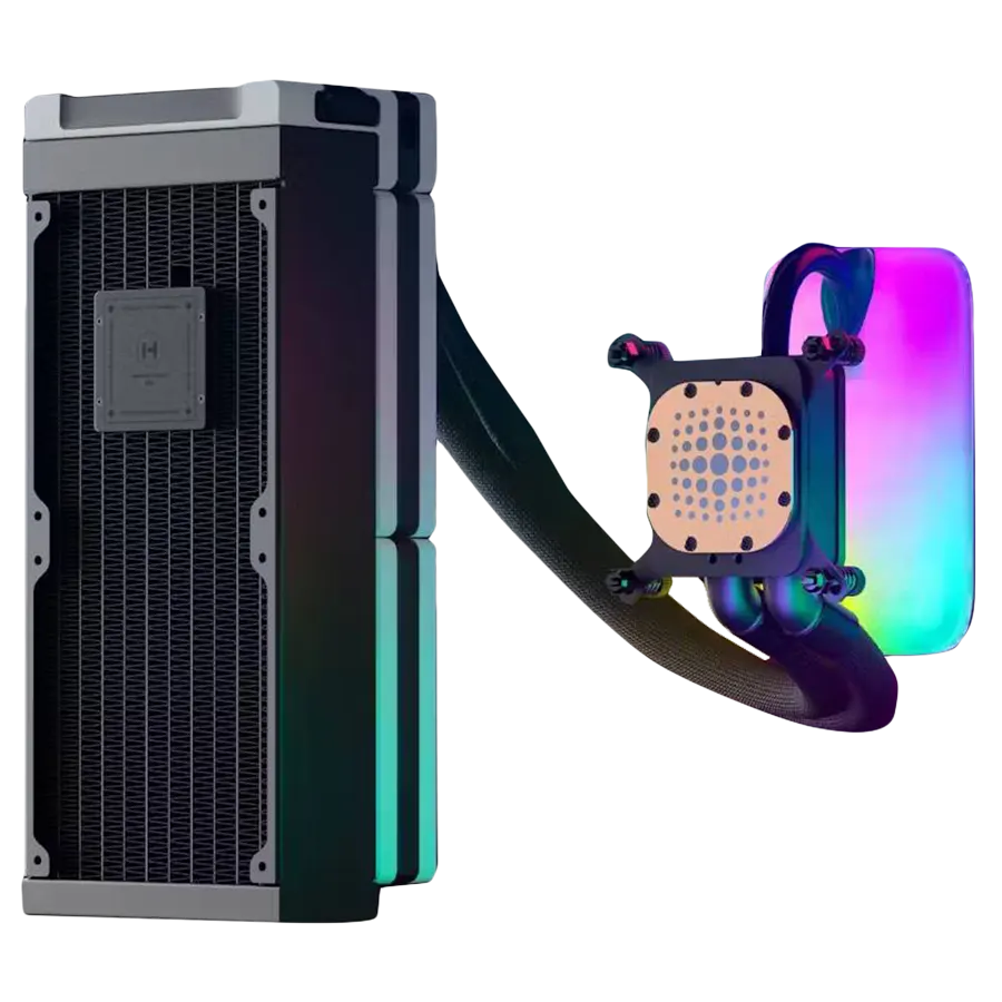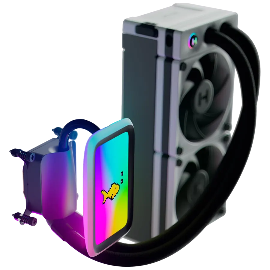 رادیاتور آلومینیومی با ابعاد ۲۴۰×۵۲ میلیمتر و طراحی دو مسیره، انتقال حرارت مؤثری را فراهم میکند. دو فن THICC FP12 با ضخامت ۳۲ میلیمتر و تیغههای تقویتشده با پلیمر کریستال مایع، جریان هوای ۱۰۵.۸ CFM را ارائه میدهند. این فنها با سرعت قابل تنظیم بین ۰ تا ۳۰۰۰ دور در دقیقه و حالت Zero RPM، عملکردی بیصدا و کارآمد دارند.