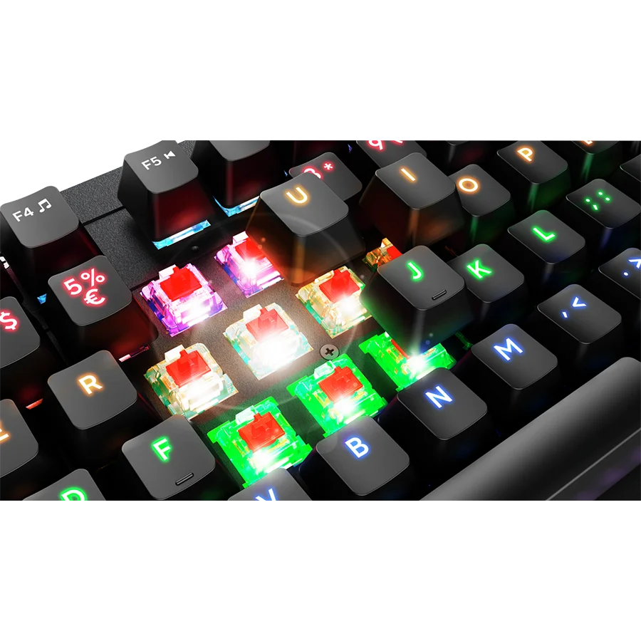 کیبورد گیمینگ تراست Trust GXT 863 Mazz با سوییچهای مکانیکال قرمز که با حساسیت بالا و واکنش سریع طراحی شدهاند، گزینهای ایدهآل برای گیمرها است. این سوییچها با حس خطی خود، بدون ارائه بازخورد لمسی اضافی، تجربهای سریع و بینقص را در هنگام بازی فراهم میکنند. به همین دلیل، گیمرهایی که به دقت و سرعت در واکنشها اهمیت میدهند، از عملکرد این کیبورد نهایت لذت را خواهند برد.
