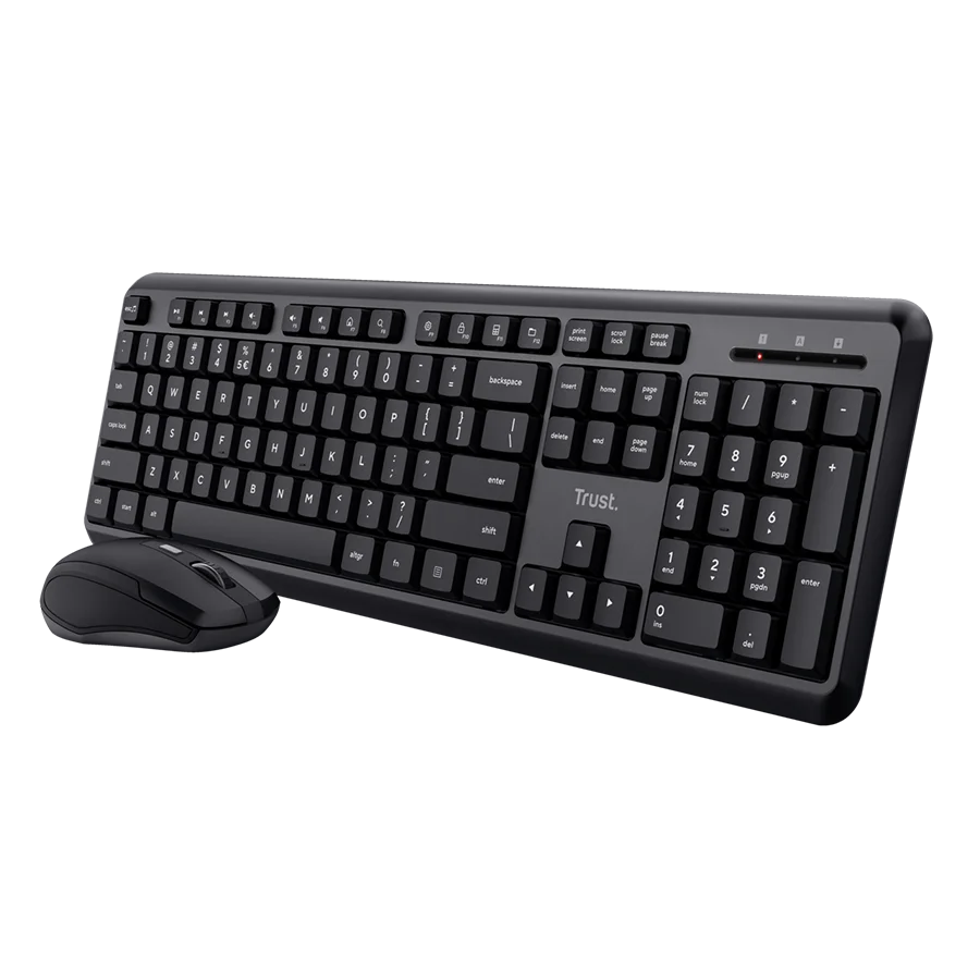 ست بی سیم کیبورد و ماوس تراست Trust Ymo Wireless Keyboard and Mouse Set یک مجموعه ایده‌آل برای افزایش بهره‌وری و سهولت در استفاده است. این ست به صورت بی‌سیم طراحی شده و تنها با یک گیرنده USB به هر دو دستگاه متصل می‌شود. کیبورد این مجموعه دارای کلیدهای بی‌صدا و نرم است که تایپی راحت و بی‌صدا را تضمین می‌کند، در حالی که ماوس بی‌سیم نیز با کلیدهای بی‌صدای خود از ایجاد مزاحمت برای دیگران جلوگیری می‌کند. طراحی تمام‌سایز کیبورد به همراه 13 کلید میانبر برای کنترل سریع و آسان وظایف مختلف اداری و رسانه‌ای، کار با آن را لذت‌بخش می‌سازد.