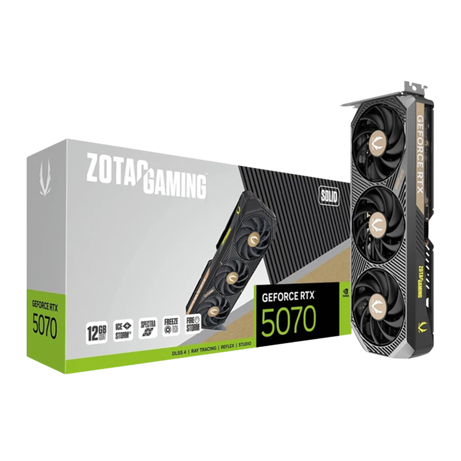 ZOTAC RTX 5070 Solid نه تنها برای گیمرها بلکه برای تولید کنندگان محتوا گزینهای ایدهآل است. با استفاده از فناوریهای NVIDIA Studio، Reflex 2 و ACE، این کارت تجربهای روان، سریع و با پاسخ گویی بالا را در بازیها و نرمافزارهای حرفهای خلق میکند. نرخ فریم بالا و کیفیت بصری فوق العاده آن، تجربهای بینظیر را رقم میزند.