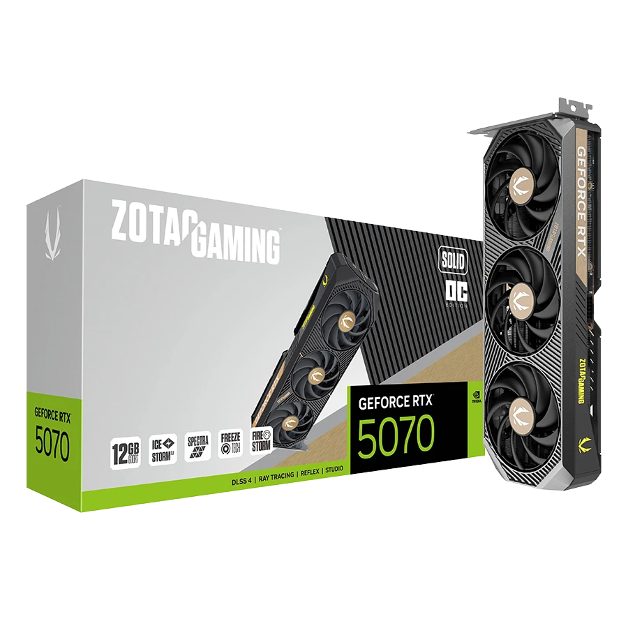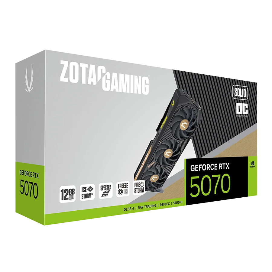 ZOTAC RTX 5070 Solid OC نه تنها برای گیمرها بلکه برای تولید کنندگان محتوا گزینهای ایدهآل است. با استفاده از فناوریهای NVIDIA Studio، Reflex 2 و ACE، این کارت تجربهای روان، سریع و با پاسخ گویی بالا را در بازیها و نرمافزارهای حرفهای خلق میکند. نرخ فریم بالا و کیفیت بصری فوق العاده آن، تجربهای بینظیر را رقم میزند.
