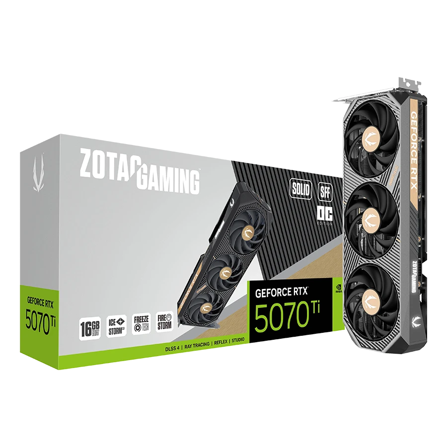 کارت گرافیک زوتک Gaming RTX 5070 Ti SOLID SFF 16GB OC با طراحی دو اسلاتی کوچک، انتخابی فوقالعاده برای کیسهای کامپکت است. این کارت با وجود ابعاد جمعوجور خود، عملکردی معادل مدلهای ردهبالای بزرگتر ارائه میدهد. طول ۳۰۴ میلیمتری آن باعث میشود در انواع کیسهای Mini-ITX نیز بهراحتی نصب شود. ظاهر مینیمال با نورپردازی LED سفید، آن را به قطعهای چشمنواز در هر سیستم تبدیل میکند.