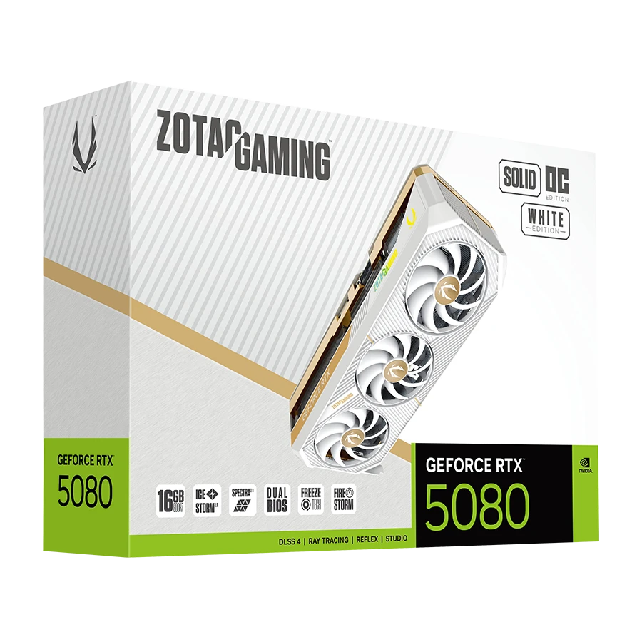 کارت گرافیک زوتک Gaming RTX 5080 SOLID 16GB OC White با طراحی سفید یکپارچه، زیبایی خاصی به سیستمهای گیمینگ میبخشد. استفاده از متریال فلزی مستحکم و نورپردازی RGB با فناوری SPECTRA 2.0 آن را به یک اثر هنری واقعی تبدیل کرده است. طراحی منحصربهفرد بدنه و بکپلیت دایکست فلزی حس کیفیت بالا را به کاربر منتقل میکند. سطح خارجی آن با بافتهای لمسی خاص طراحی شده که تجربهای لوکستر به کاربر ارائه میدهد. این کارت نهتنها عملکرد بالایی دارد، بلکه از لحاظ ظاهری نیز یکی از خاصترین قطعات بازار است.