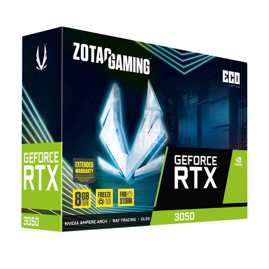 کارت گرافیک زوتک RTX 3050 ECO 8GB یکی از محصولات بر پایه معماری NVIDIA Ampere است. که برای گیمرها و خلاقان حرفهای طراحی شده است. این کارت با استفاده از حافظه GDDR6، هستههای تقویت شده Tensor، و همچنین پردازندههای چند جریانی جدید، تجربهای از بازیهای بهینهشده و پردازش ویدیویی سریع را فراهم میکند. RTX 3050 ECO با مصرف توان ۱۱۵ وات و نیاز به منبع تغذیه ۴۵۰ وات، یکی از کارتهای گرافیک کممصرف در دسته خود محسوب میشود. ابعاد کارت 222.3 میلیمتر طول، 116.8 میلیمتر عرض و 41.4 میلیمتر ارتفاع است و به راحتی در اکثر کیسهای استاندارد جا میگیرد.